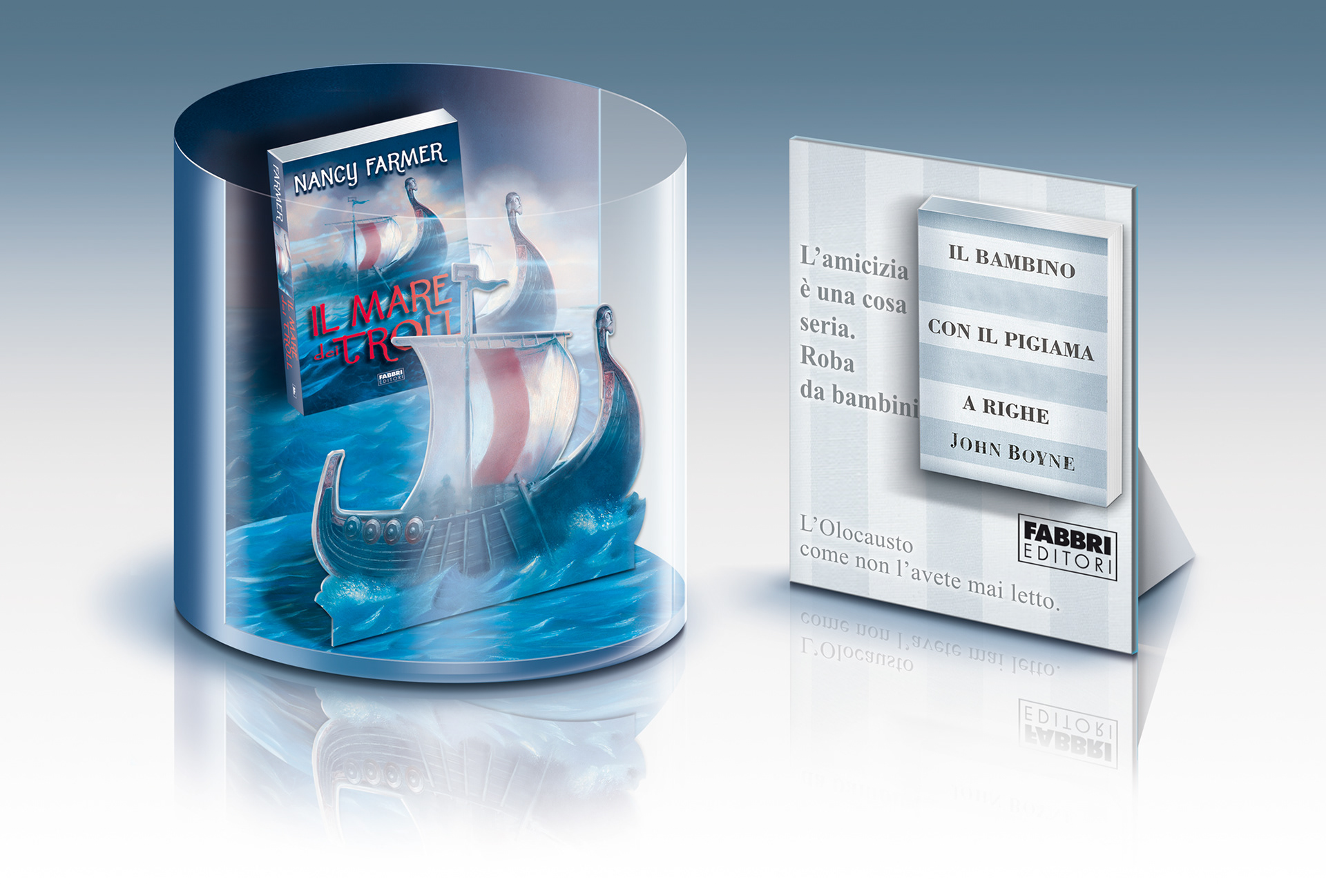 espositori per lancio romanzi nei punti vendita